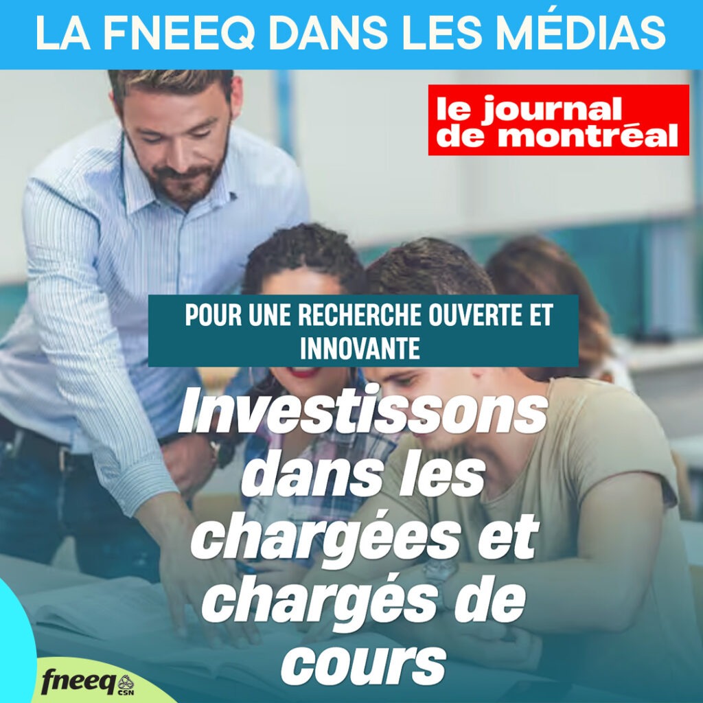 Nous invitons le gouvernement du Québec, et tout particulièrement la nouvelle ministre de l’Enseignement supérieur, Mme Martine Biron, à poser un geste fort : créer ce programme de financement dédié aux personnes chargées de cours pour ainsi libérer un potentiel de recherche dans nos universités, aux quatre coins du Québec. Cet investissement, c’est un pari sur l’intelligence collective, sur la créativité et sur l’avenir.